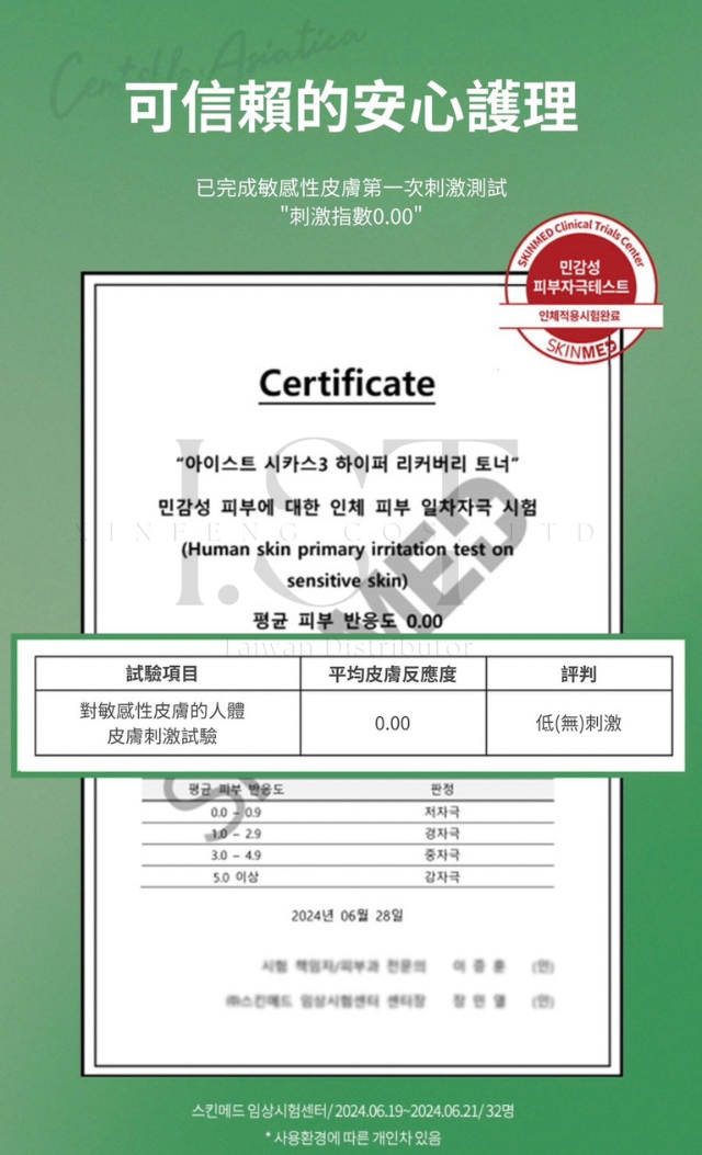 完成肌膚舒緩功效評估測試